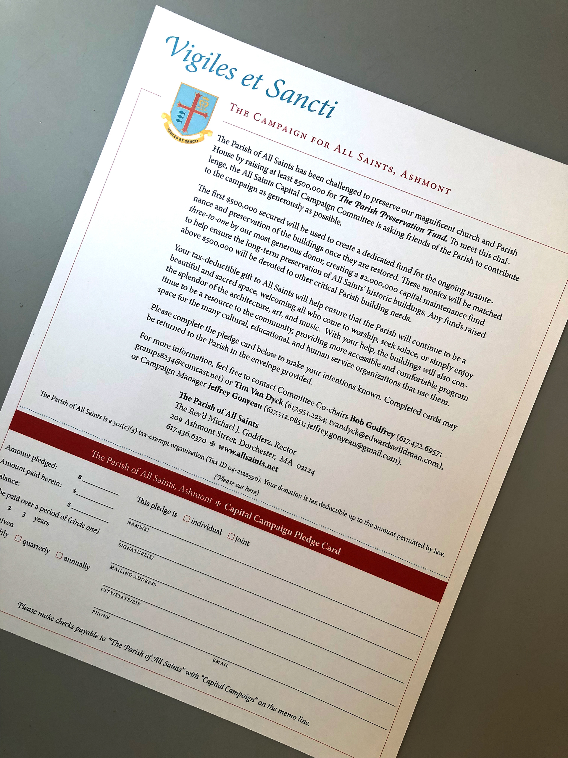 The Church of All Saints – Ashmont | Boston, MA capital campaign brochure and related pieces